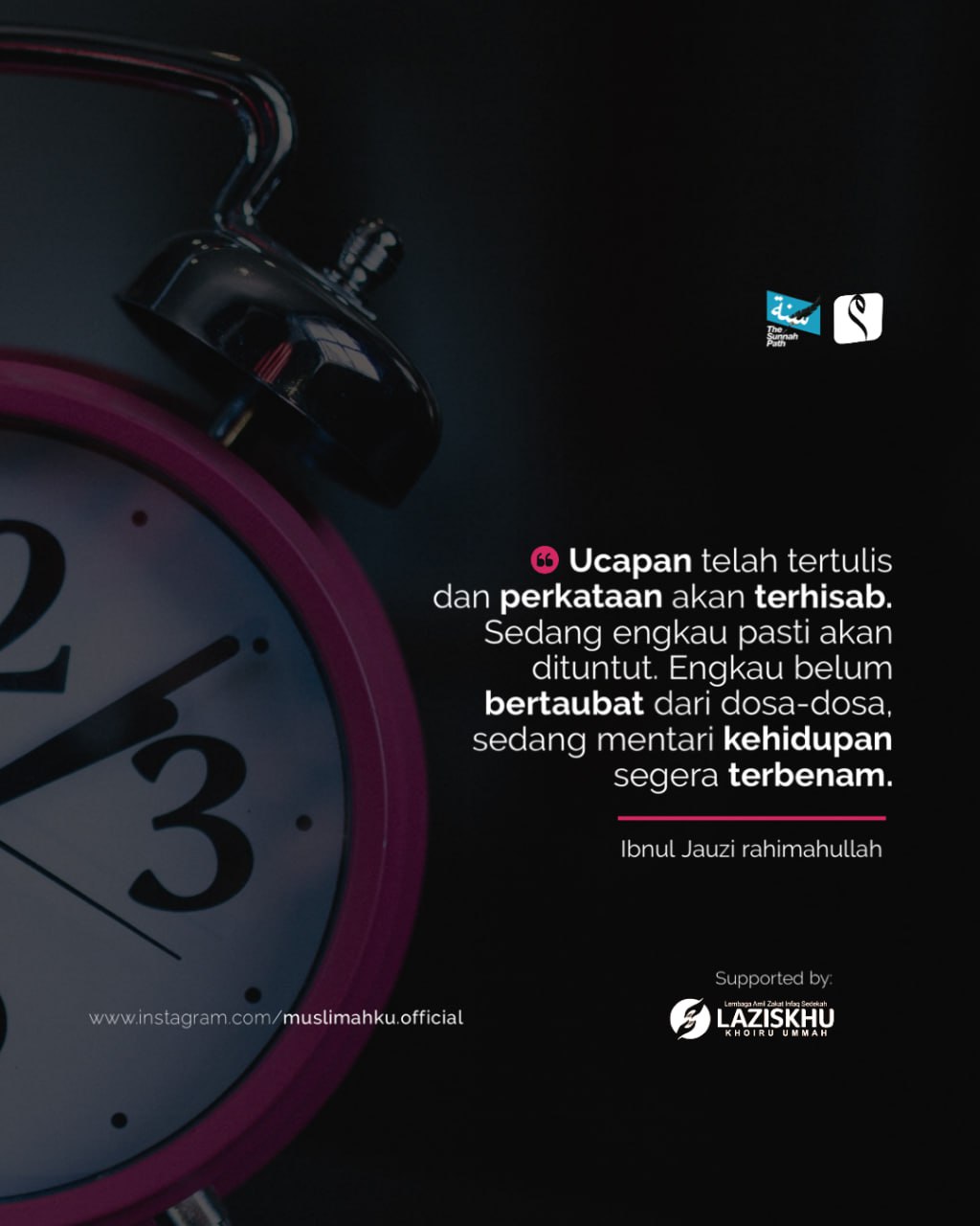 Ucapan telah tertulis dan perkataan akan terhisab. Sedang engkau pasti akan dituntut. Engkau belum bertaubat dari dosa-dosa, sedang mentari kehidupan segera terbenam.