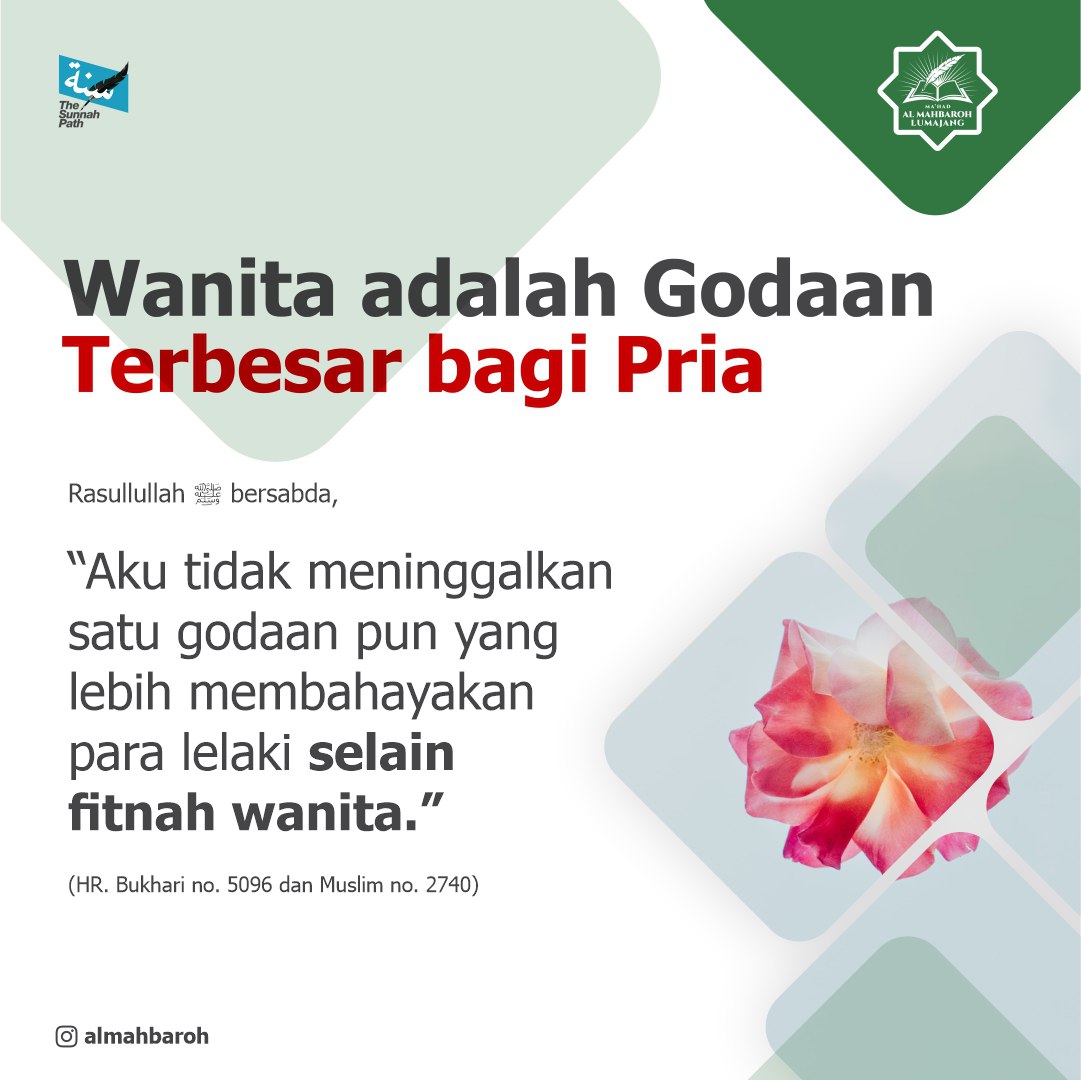 “Aku tidak meninggalkan satu godaan pun yang lebih membahayakan para lelaki selain fitnah wanita.” (HR. Bukhari no. 5096 dan Muslim no. 2740)
