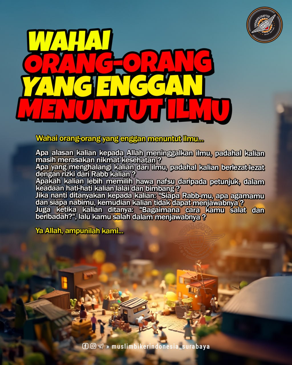 ○ Anda ingin menuntut ilmu ? Pasti ada halangan dan rintangan. Entah itu rasa malas, ngantuk, berat meninggalkan urusan dunia seperti berdagang, dsb.